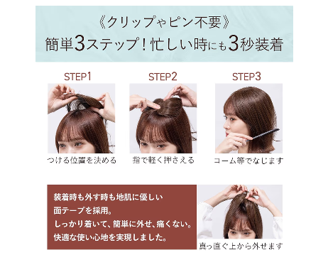 『ちょいプラス シートエクステ』とは分け目やつむじ、白髪が気になる部分にさりげなく自然になじませることができるアイテムです。「少しだけボリュームがほしい」「白髪を自然にぼかしたい」そんな時にぴったり✨ウィッグほど大げさではなく、いつものスタイルにちょい足し感覚で使いやすいのが特徴です✨¥28,490 税込み無料相談・試着も可能です。※ 詳しくはお気軽にご相談ください。